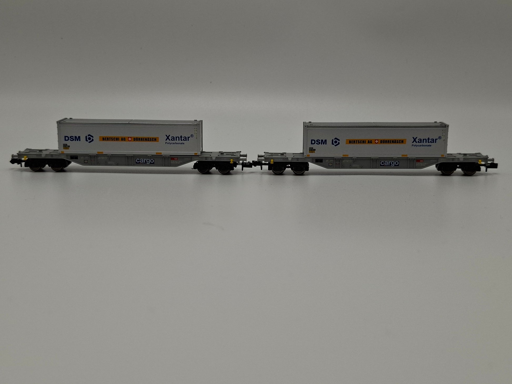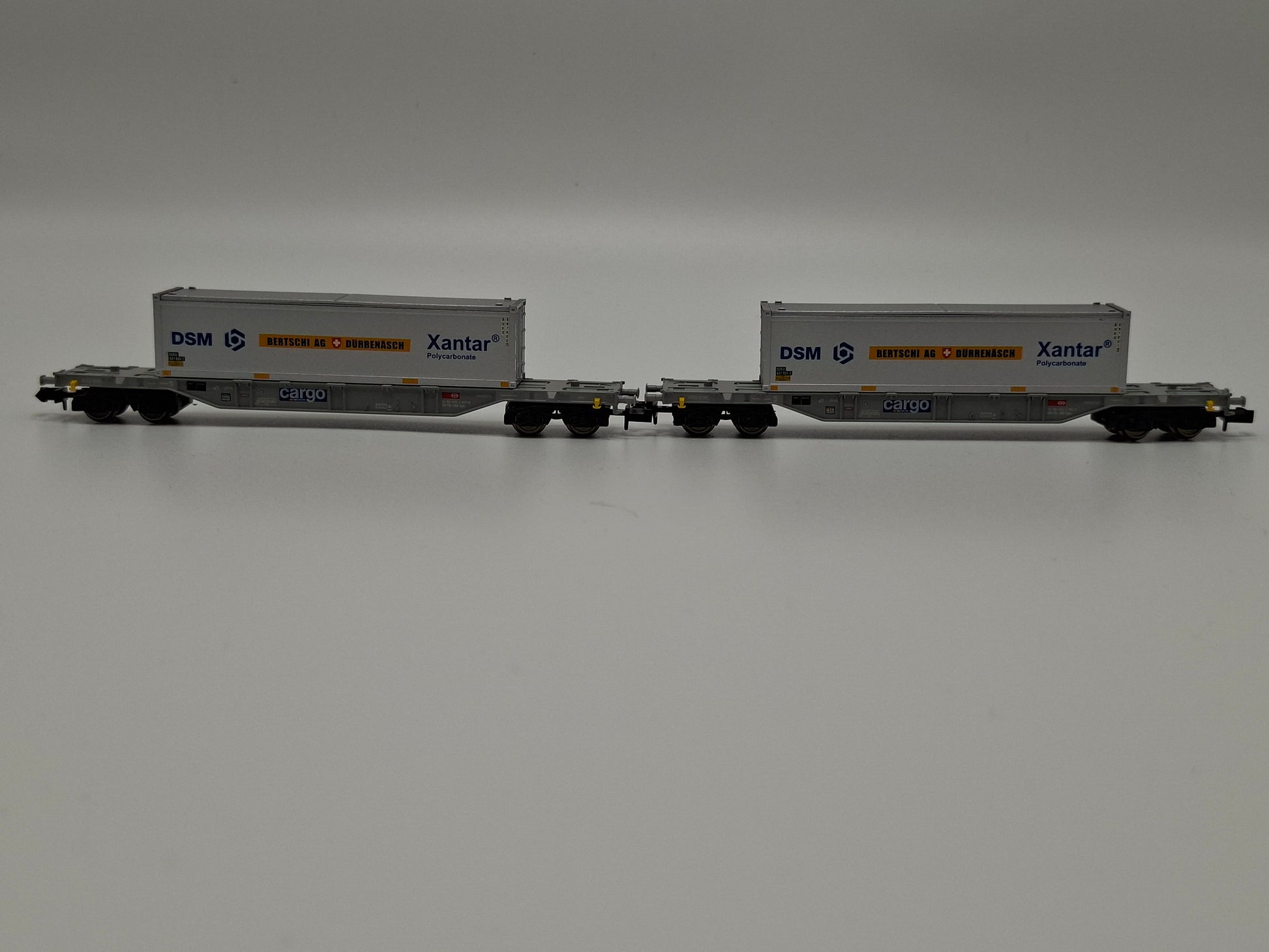 Fleischmann 825501 SBB Set 2-teilig Container-Tragwagen mit zwei 40´ Containern ´DSM´, ´Bertschi DÜRRENASCH´, ´Xantar´ OVP (EOS13)