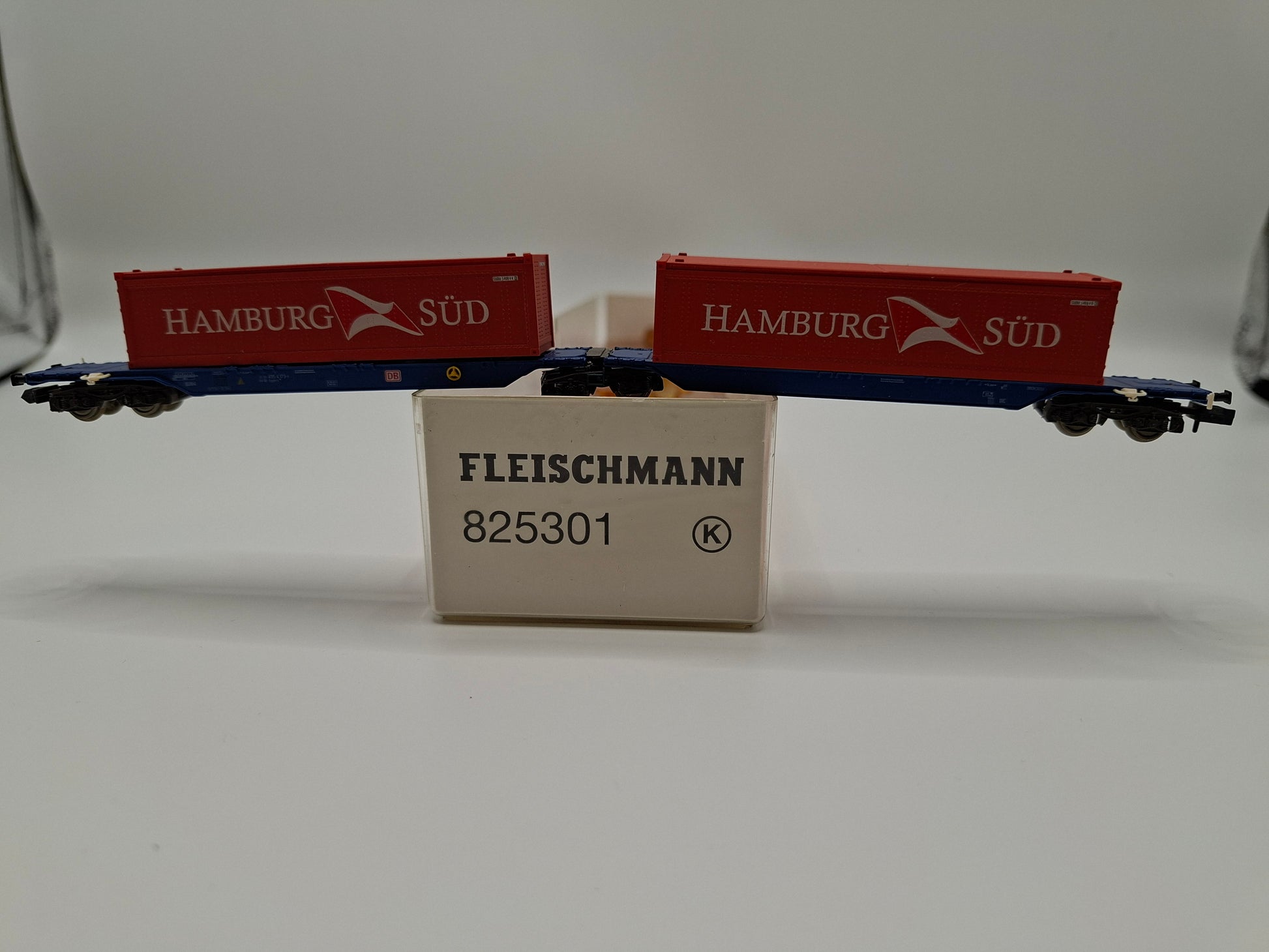 Fleischmann 825301 DB Gelenk-Containertragwagen mit zwei 40´ Containern (rot) ´HAMBURG SÜD´ OVP (EOS10)